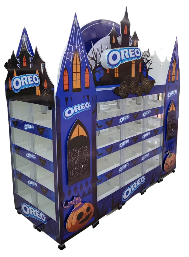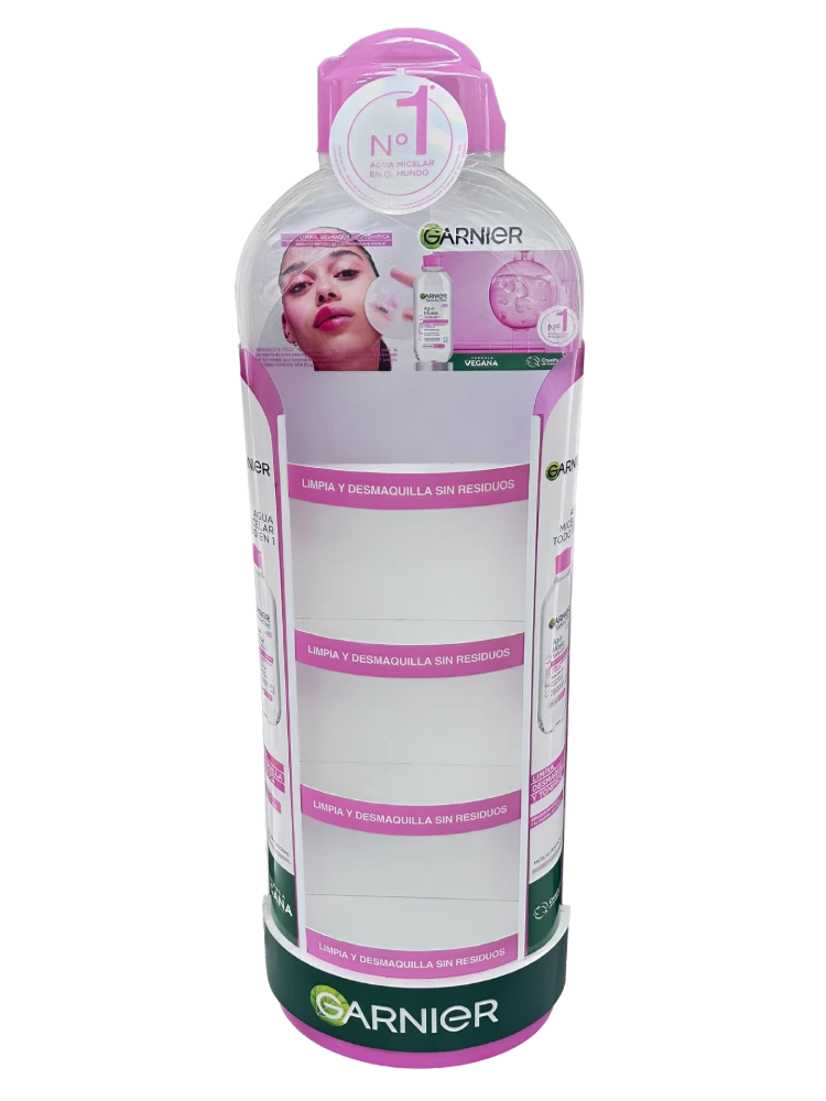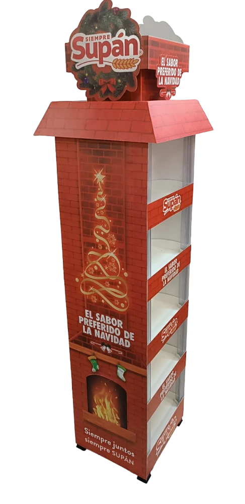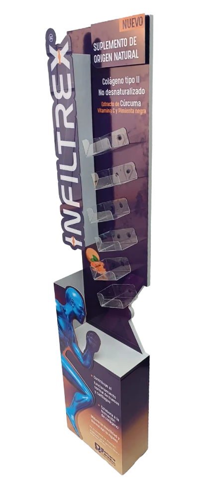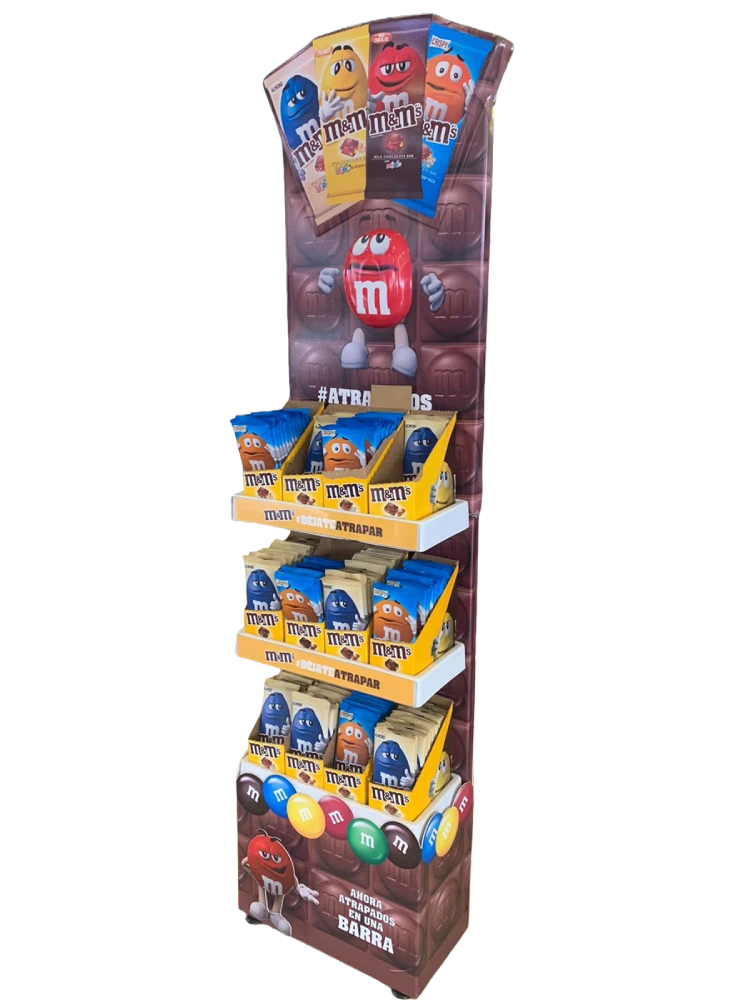 Soluciones de exhibición para punto de venta en formatos de piso isla, piso pared, legos y piso arete, diseñadas para maximizar visibilidad y orden del producto.