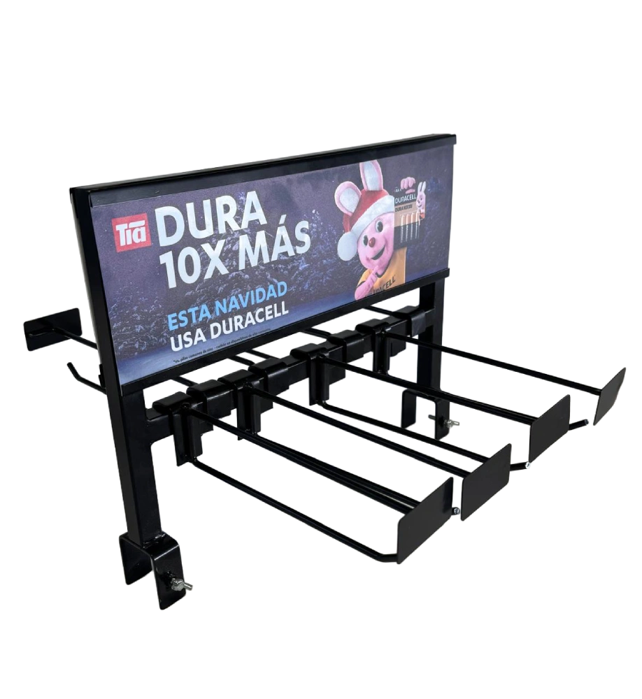 Sistemas de exhibición para compras por impulso como tiras, ristras, parásitos, gancheras, pared, aéreos y chuponeras, enfocados en aumentar la conversión.